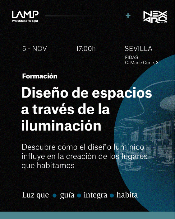 Tras su presentación a agentes y empresas del sector, el proyecto NEXARQ, impulsado por FIDAS y el COAS, da comienzo a su calendario de actividades. Lo hace de la mano de LAMP Worktitude for Light con la Semana LAMP, que tendrá lugar del 4 al 6 de noviembre en la sede de FIDAS.